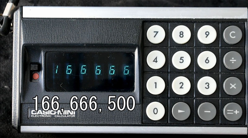 羽方:我觉得我们成功地制造出了前所未有的东西。我认为最重要的一点是它可以电池供电。在那之前的计算器都有电源线,人们无法随身携带。我觉得拥有一台便携式计算器非常有吸引力。这更坚定了我的想法:如果计算器不能在任何地方使用,就永远不会普及。而为了实现这一点,我们必须使用电池。我们必须让人们在电池供电下能使用计算器好几个小时,所以我们尽可能地专注于实现低功耗设计。我们使用的技术之一是将数字“0”显示得比其他数字小。
