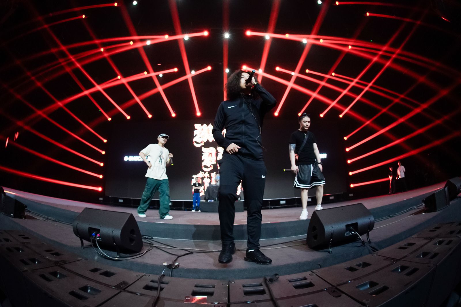 随后,成都本土嘻哈歌手Hennessy、Wakeupp 、MENGZI 、李尔新轮番炸场,用各自精彩绝伦的flow上演视听盛宴。